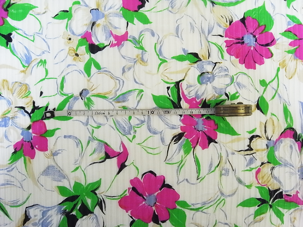白地にピンク×グリーンの色使いが爽やかでが夏らしい生地に仕上がっています。