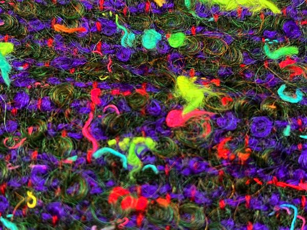パープルの地色に色鮮やかな色糸が一緒に織られ華やかな生地に仕上がっています。