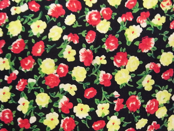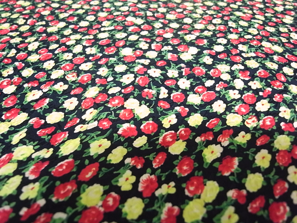 黒地にマルチカラーの色使いで小花柄プリントが施されたGIVENCHYらしい上品な雰囲気の生地です。