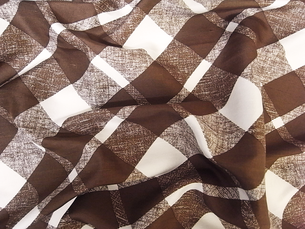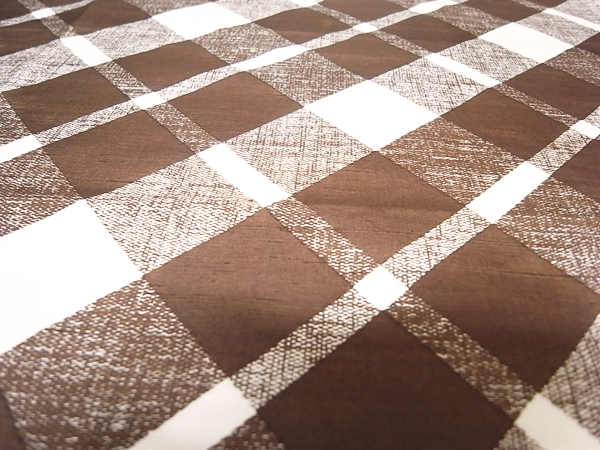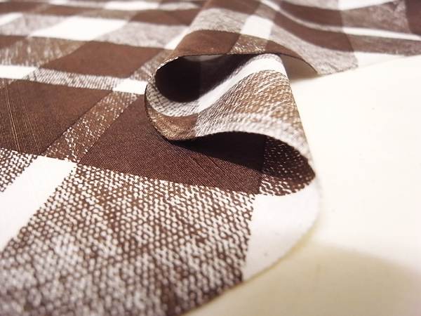 シルクシャンタン地にブラウンの色使いでアーガイルチェック柄がプリントされています。