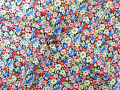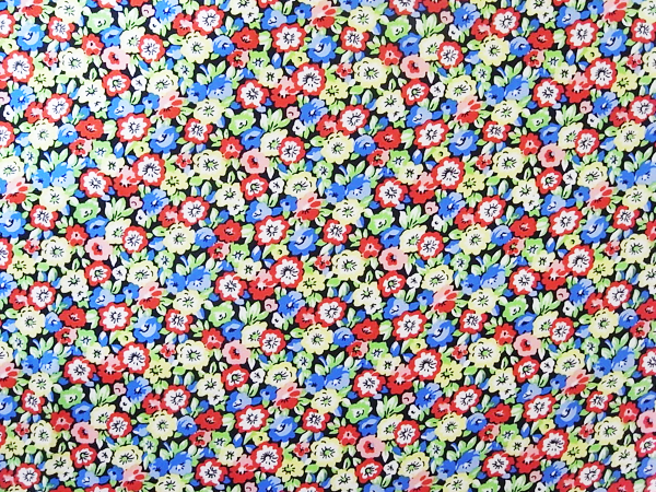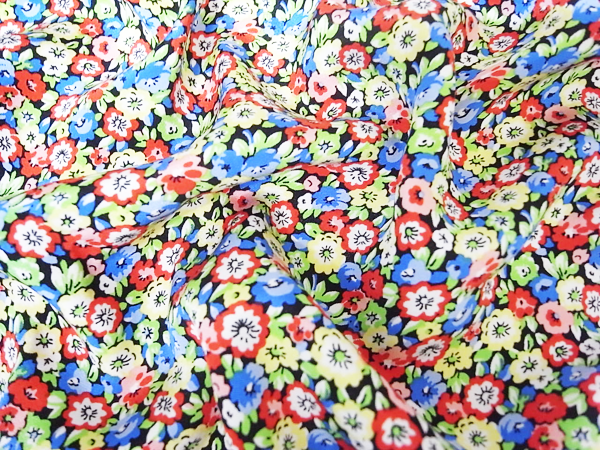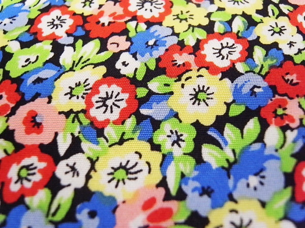 上質なヘビーシルク地にマルチカラーの色使いで小花柄プリントが施された一品。