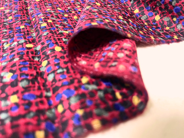シルクウールの上質な風合い×プリントの発色は最高で高級感溢れる生地に仕上がっています。