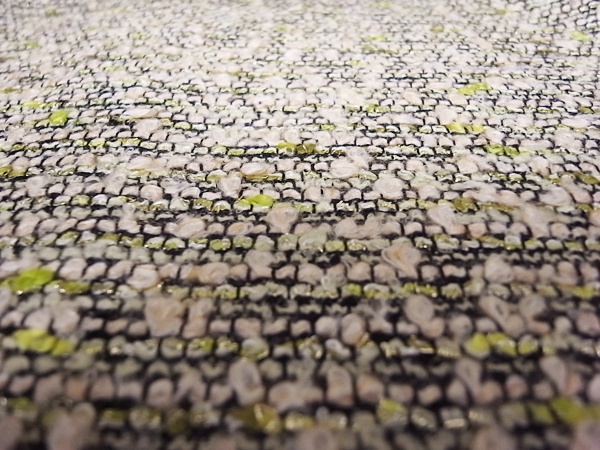 ベビーピンクとイエローのコントラストにプラスしてラメ糸が入っていてファンシーな雰囲気たっぷりな生地です。